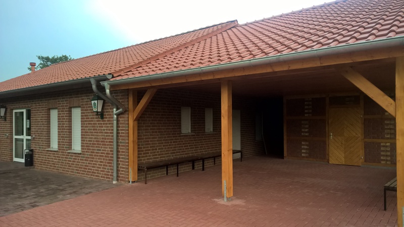 Parallel wurde von den zahlreichen Helfern noch ein Dachanbau ans Vereinsheim errichtet. Dieser soll sowohl als Unterstand für Besucher des Vereinsgeländes dienen als auch als Abstellraum für diverse Vereinsmaterialien.